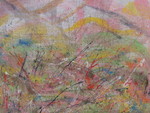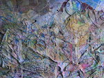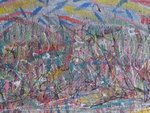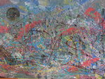 2011In this painting there were found materils used, (cardboard, fabric and paper) to create texture. Acrylic paint was applied and allowed freedom to flow at will.